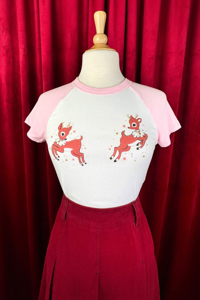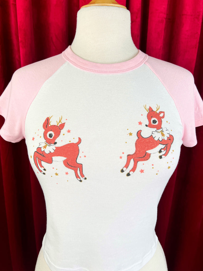 Stella Deer Short Raglan Cropped Baby tee in White/Pink