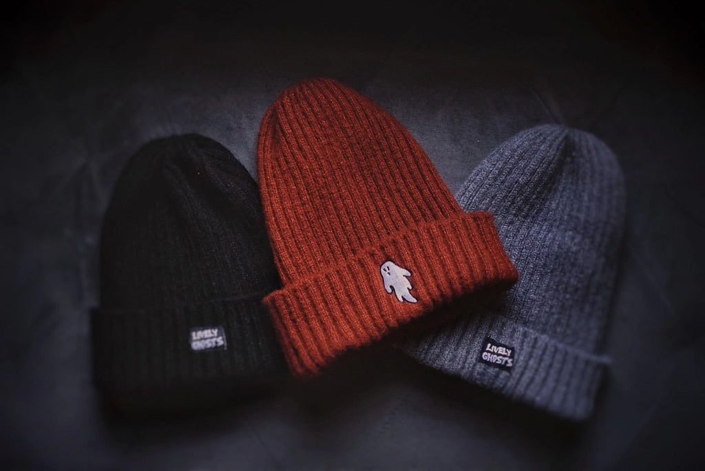 Midnight black | “ghostie” embroidered knit beanie