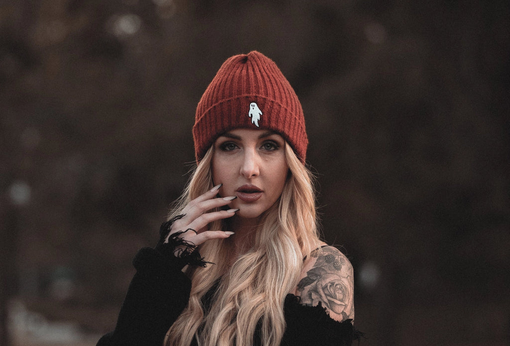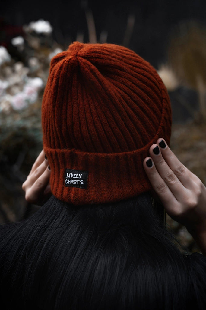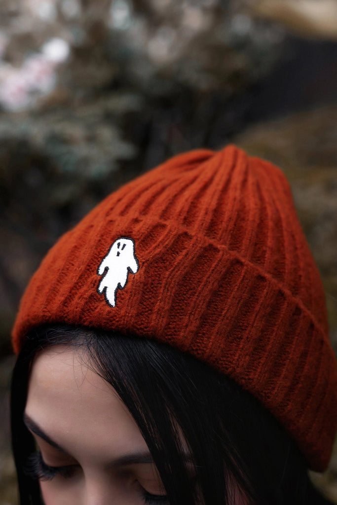 Ghostie Embroidered & Reversible Knit Beanie - Halloween Orange