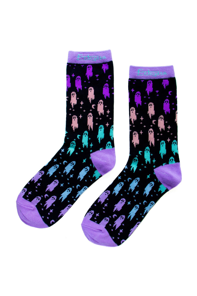 These spooky socks feature cute ghosts, stars, and moons in a rainbow of colors. They're a colorful way to add a hint of witchery to any outfit.